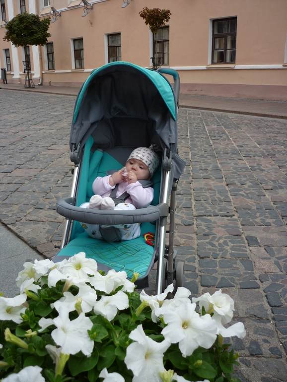 На последней фотографии очаровашка))))) Эх, я от добеременного на 10 кг уже похудела, оно-то хорошо, но заказала через инет брюки, так пока они ехали, я еще на размер похудела))))) Теперь они на мне висят))))А не страшно не сидящего ребенка сажать? Я даже на 45 градусов не приподнимаю пока спинку у коляски, только у стульчика для кормления. Спинки-то у них еще слабые, пока сами не сядут... Жалко. если будет со сколиозом мучиться в будущем, у меня сколиоз стал причиной сильных головных болей.