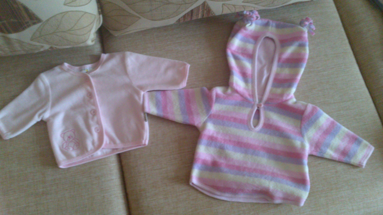 Кофточки Next и Newborn, полосатая нравится очень, только не знаю как мы будем её надевать через голову)