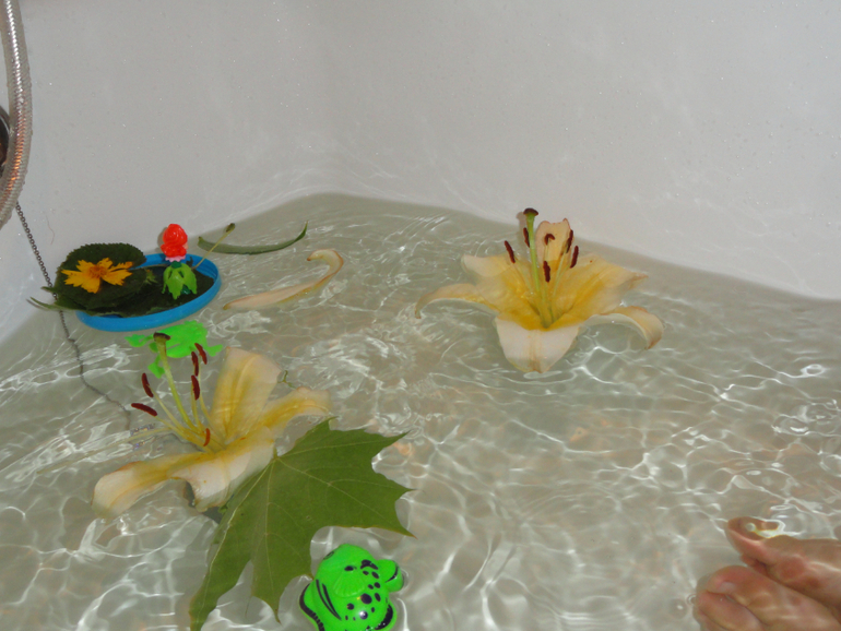 Но конечно следующая игра Кате понравилась куда больше))). Пруд перенесли в ванную.