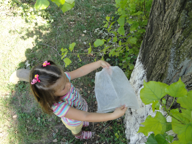 Триз-вопрос: как спуститься с дерева? Катя сразу предложила лестницу, но я просила её подумать еще, т.к. в лесу лестницы не найдешь. И вот, что она еще предложила: пенек подставить, веткой достать и прыгнуть на что-то мягкое. Последнее мы осуществили: ловили Дюймовочку на кулечек.