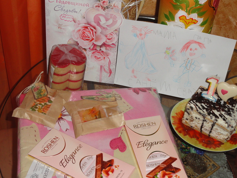 Вот так в понимании дочки выглядит мама-невеста и папа-жених))) Рисунок стал сюрпризом для нас, т.к. пока мы были на работе. Катя с бабушкой подготовили нам просто восхитительное поздравление-сюрприз в гостиной.