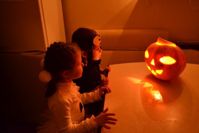 В темноте с помощью фонарика нашли игру на тему осени. Потом сыграли в мемори разок.
