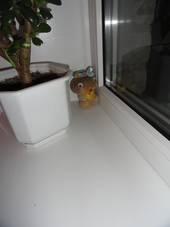 Творили коллективно. Это дерево и на нем желудь зеленый. У Кати очень большой))) Зато с шапочкой и хвостиком. Катя нарисовала еще домик внизу.
