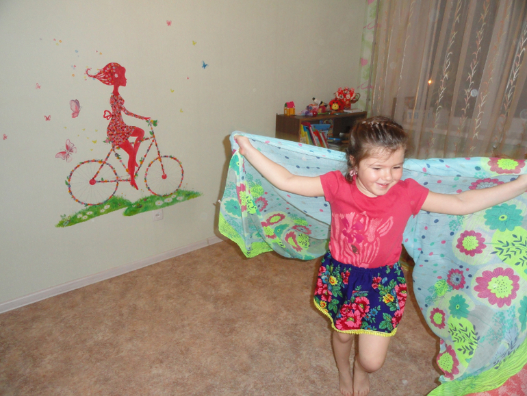 В благодарность за старания Весна украсила цветами наше платье для утренника. На фото плохо видно, т.к. очень мелкие цветочки.