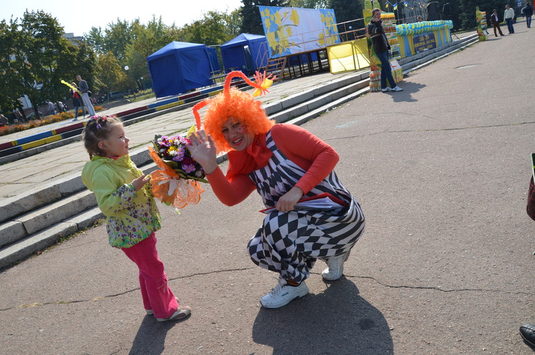 Потом мы встретили клоунов. Катя с ними прекрасно пообщалась, я даже удивилась такой раскованности.