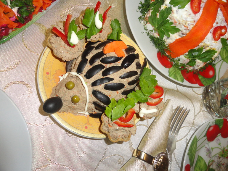 И еще помогала украшать блюда.Я правда потом почти все переделывала, но процесс ей понравился. Вот ёжика вместе украшали.