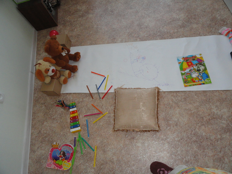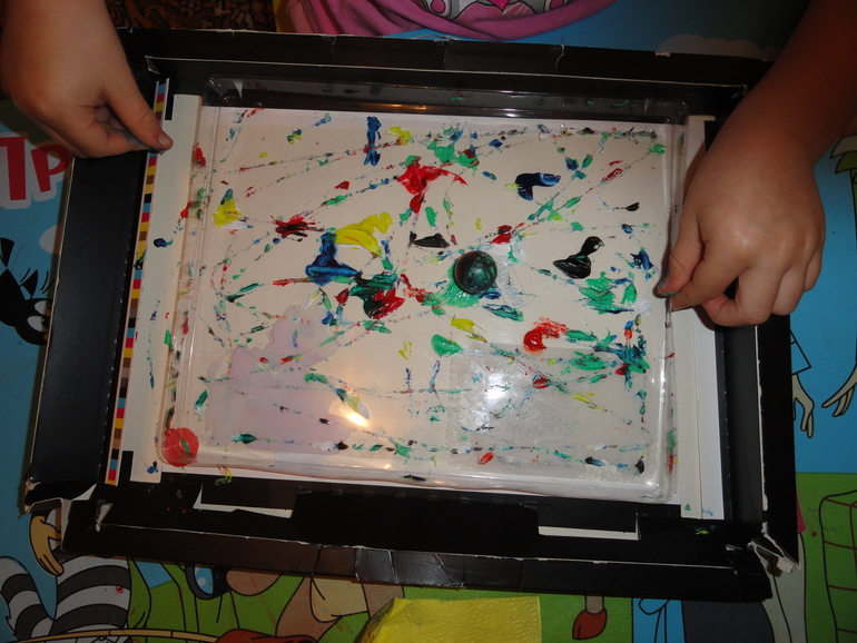 Катя сегодня вечером затребовала что-то новенькое, интересненькое. Решила попробовать с ней рисование шариком. Шарик у меня к сожалению был лишь один, но все равно поиграли.
