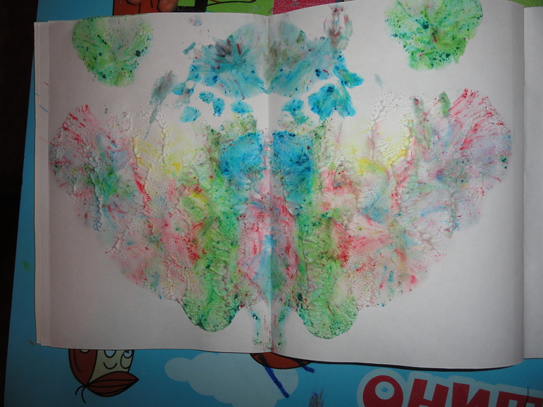 Итак, нашему папе предстояло отгадать, чем же мы сотворили эти шедевры. Не угадал. КАТЯ подсказала: "Папа - это твоя брелка)))". Но и это не помогло. А все просто - пенка для бритья и красители. Весело и креативно.