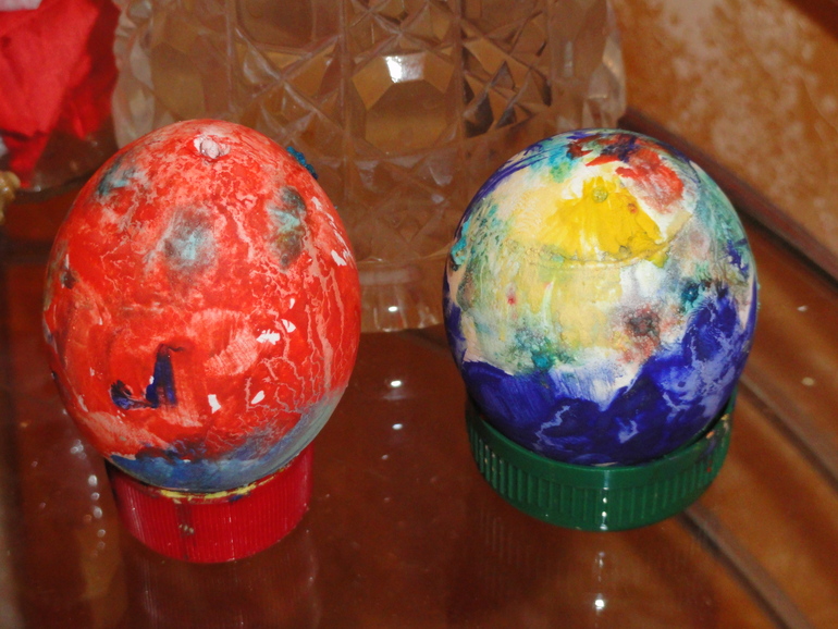 Покрасили еще яиц (пустые). На фото даже красиво смотрится)