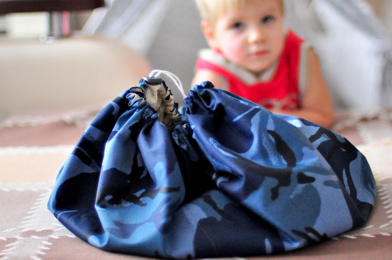 Я давно смотрела в инете тему, про такие мешки- коврики, для игрушек, хотела уже купить, но две ткани, шнурок и затяжка, в руках моей свекрови, вылились в это чудо 😊😚