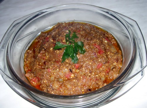 Баклажаны запекла в духовке, при запекании один раз перевернула. Далее сняла с них шкурку, меленько порубила, помидоры также можно порубить, но я их натерла на крупную терку, так, чтобы кожура от них оставалась в руке, в чашу блендера положила лук, чеснок, добавила масло и измельчила. Потом все ингредиенты перемешала, посолила, поперчила все! Вкуснее, когда настоится в холодильнике, хотя бы часик. При подаче украсить зеленушкой) Я обожаю с базиликом, муж и сын - с петрушкой.
