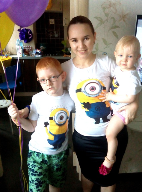 Первый конкурс "прилепи с закрытыми глазами глаза миньону". Детям очень понравилось. Вначале была проверка на вестибюлярный аппарат, детей кружили вокруг оси, а потом запускали.... к двери.