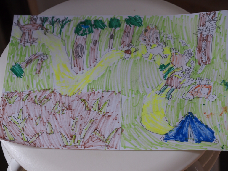 По прибытию домой ребенок нарисовал по своим воспоминаниям карту.