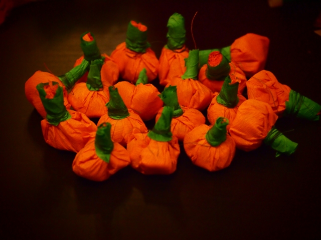 Накрутили с сыном для его друзей тыковок с мармеладками.
