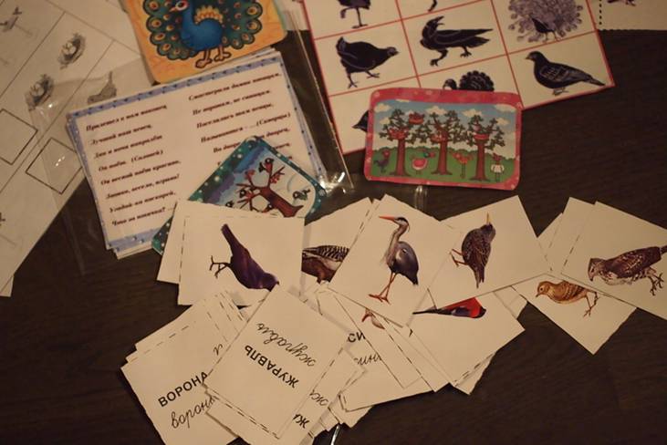 Также перебрали карточки, выбрали зимних птиц и поиграли в мемо