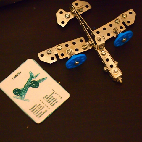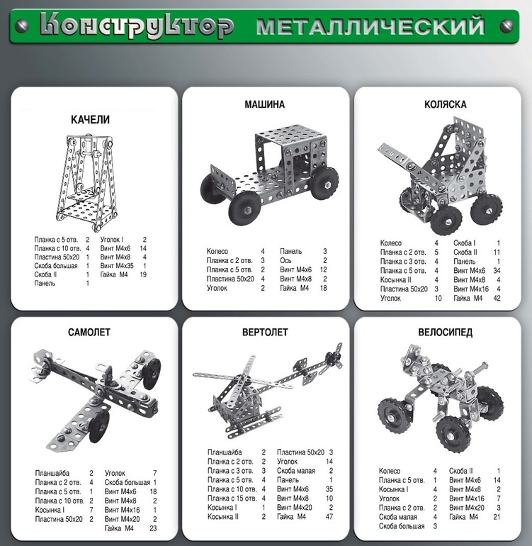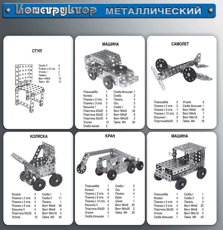 Я сделала игру в виде карточек. Ход игры был таков, каждый берет по карточке и собирает собственный "конструкт" кто быстрее соберет тот и выиграл. Работали мы с сыном вместе. Так как игра на вырост. Хотя кому как, я в свои 6 лет, столы со стульями для кукол могла за короткий промежуток времени собрать из железного конструктора, а мой сын "взращенный" на лего, 5 минут крутит винтик.