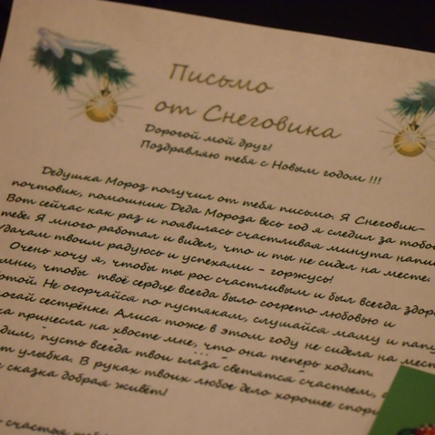 А ещё к нам сегодня приходил снеговик и оставил под дверью письмо и подарки для моих трудолюбивых пчелок. Дело в том, что все дети которые занимались на протяжении всего декабря получают подарки от снеговика)