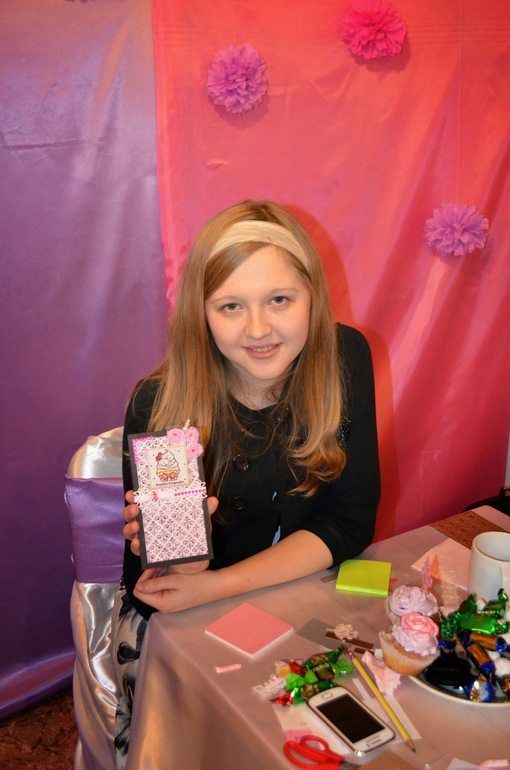 вот такую красоту они мне приготовили...)) я была в восторге. Было несколько конкурсов , каждая мамочки давала советы,делилась опытом. А еще мы отправили письмо в будущее,моей доченьке. Каждая,кто была на празднике написали ей пожелание, сложили в конверт и заклеили. Доця должна прочитать в 16 лет)) Потом был мастер класс блокнотика для заметок на магните на холодильник. Его проводила моя любимая подружайка Наталка . Вот как это было: