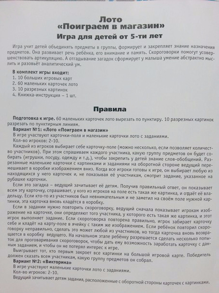 Тематика может быть разная. У нас лото "Поиграем в магазин".