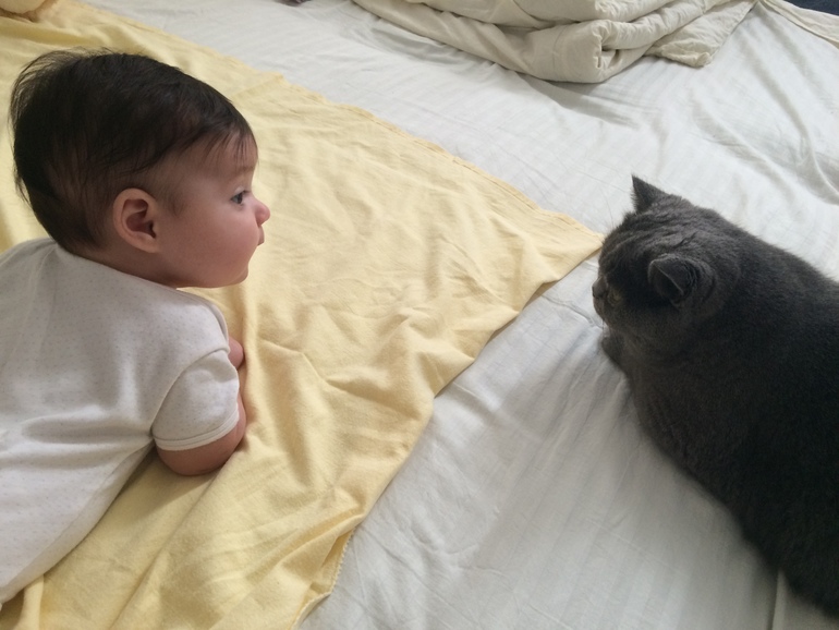 Как быстро летит время и как быстро растут детки! Ещё вчера принесли домой мою крошку, а сейчас мы уже весим 7кг рост 63,5, крутим головой на 360, хватаем ручками все, что хватается, и тянем в рот, улыбаемся, пускаем слюни, резвимся в ванной, в общем, всего не описать! Ещё умеем переворачиваются со спины на живот, но почему-то несколько дней она активно переворачивалась, а сейчас перестала- может забыла, или просто не хочет. Обратно всего пару раз получалось, наверное случайно) хорошо держит голову, когда протягиваю игрушку, хватает ручками и тянет в рот. пытается лёжа на животе достать до игрушек, но пока протянуть ручку не очень получается, хотя если совсем рядом с рукой положить, то берёт. Активно дрыгает ножками- очень хочется подползти к игрушкам поближе)) Дикий восторг вызывает большой цветастый звенящий плюшевый мяч- когда видит его, забывает обо всем))) с ним мы стрижём ноготки, чистим ушки, носик, расчесываемся, и проводим прочие нелюбимые процедуры) ещё уважаем курочку с вишневыми косточками, нравится её тискать) улыбается себе в зеркале, деткам в поликлинике, и вообще всем, кто обратит на неё внимание. Запросто может ненадолго остаться с бабушкой или дедушкой, ведёт себя хорошо, улыбается, играется, но когда я возвращаюсь, "жалуется" жалобным плачем- без мамы плохо, как ни крути. Очень нравится наблюдать за кошкой, наверное первым словом будет не мама-папа, а кися) из полезных приобретений могу отметить столик для кормления от 0, у нас happybaby William. Удобная штука, раскладывается до почти горизонтального положения, пассажир пристёгиваеися ремнями и можно его за собой катать по всей квартире - спокойно готовить, спокойно вешать белье, убираться, а самое главное- спокойно поесть и почаёвничать) не забывая, конечно, болтать и менять погремухи. Ещё для большой плюс лично для меня- высоко от пола! при наличии домашних животных это очень актуально- как ни убирайся, все равно от шерсти никуда не денешься. Так что шезлонг отправился к родителям, под заемся им там-очень удобно! Гулять в люльке мы что-то разлюбили, каким выйдем- через 15 минут начинается плач, приходится попеременно отвлекать погремушкой и нести на руках. Поэтому далеко от дома мы уже не уезжаем. Спать во время прогулки тоже перестала- неудивительно, ведь вокруг столько всего интересного, а возьми-ка мама меня на ручки, я полюбуюсь городским пейзажем. Купать стараюсь в большой ванной с кругом, но если день был капризный и спали мало, то в маленькой ванночке, чтобы ещё больше не переутомить и не перевозбудить. Перешли на 3 дневных сна, а бодрствуем теперь по 2 часа. Недавно совершили первую глобальную вылазку в тц. До этого тоже заезжали пару раз, но больше набегу, и я себе ничего не успевала купить. А сегодня мне наконец-то удалось себя порадовать! И это так приятно и здорово! Доченька вела себя хорошо, но видно, что утомилась- спала остаток дня как сурок. А ещё она сделала мне подарок на 4 месяца- в первый раз засмеялась! До этого только открывала рот и говорила ыыыы)) отбой у нас примерно в 19-30, спим до 7 утра, за ночь можем покушать 3-4 раза, по прежнему на гв. Вроде бы все))