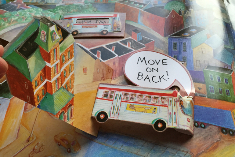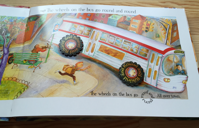 В титрах мультфильма указано, что он снят по книге. Стало интересно, порылась в интернете и узнала, что еще в 1990 году художник Paul O. Zelinsky придумал и нарисовал книгу с подвижными элементами по известной в Америке детской песенке "The Wheels on the Bus".