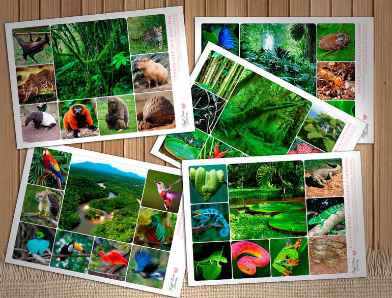 - Тропические леса (насекомые, животные, птицы, растения, рептилии и амфибии);