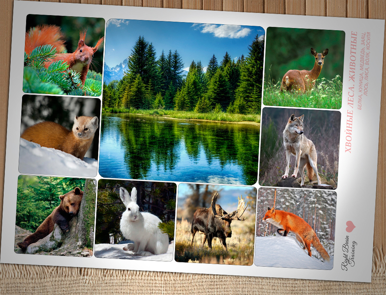 Покажите картинки с природой, расскажите, чем особенна здесь окружающая среда. Потом постепенно выкладывайте карточки с обитателями, можно рассказать что-то особенное про каждого из них, может быть у кого-то ярко-красная окраска, как у помидора или кто-то издает интересный характерный звук, пусть малыш повторит и покривляется. Естественно, подготовьтесь заранее.