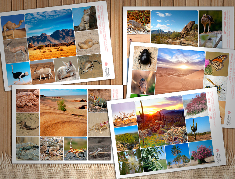 - Пустыня (насекомые, животные, птицы, растения, рептилии и амфибии);