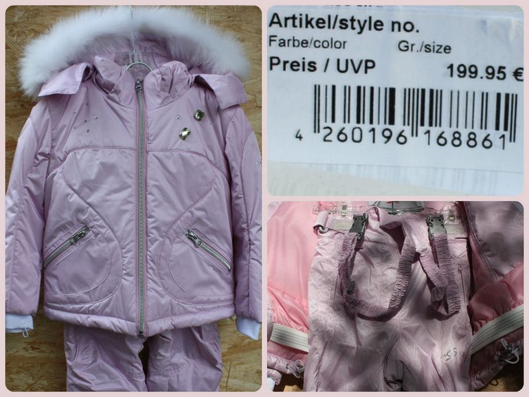 Раздельный горнолыжный комбинезон (куртка+штаны на лямках со спинкой) итальянской фирмы Cacao со стразами и опушкой из натурального меха. Размер 24(3А), т.е. на 2-3 года. Потрясающе нежный и стильный. Покупали в Италии на распродаже за 199 евро (До этого стоил 299 евро).
