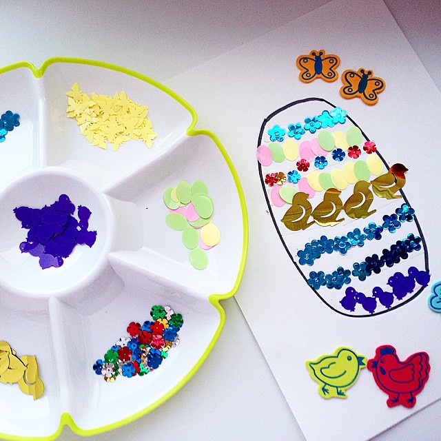 Вот что ещё можно сделать из конфетти (фикспрайс), Евик сама нарисовала яйцо, затем на него я на кле