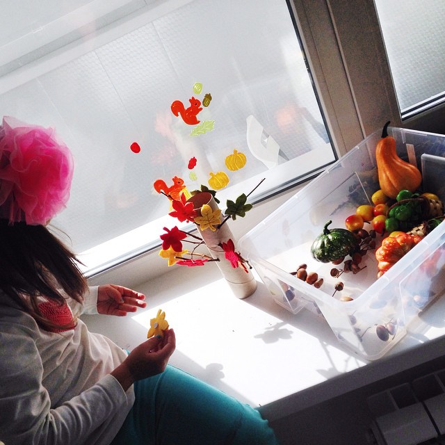 Мы с Евиком украшаем окошко на кухне)и сама делала сенсорную коробочку) #школа_для_пупсика#инстадети#игрысдетьми#идеизанятийсдетьми