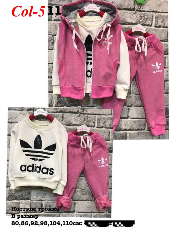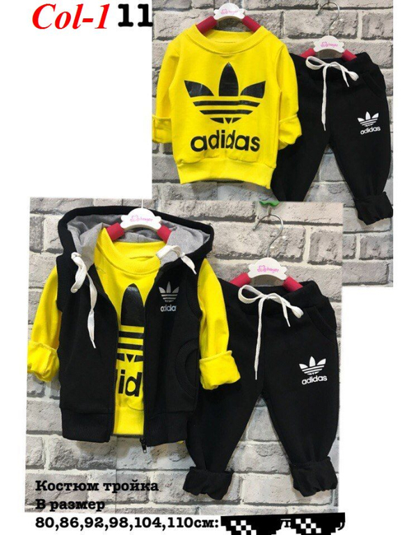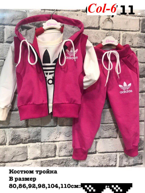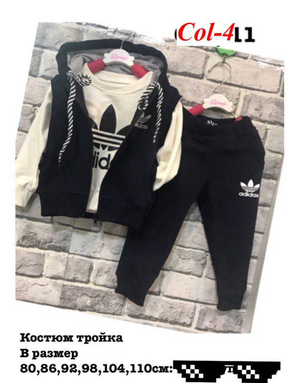 В каталоге нашего магазина можно купить детские спортивные костюмы тройка размер 80,86,92,98,104,110 состав хлопок.Кофта жилетка на молнии штанишки