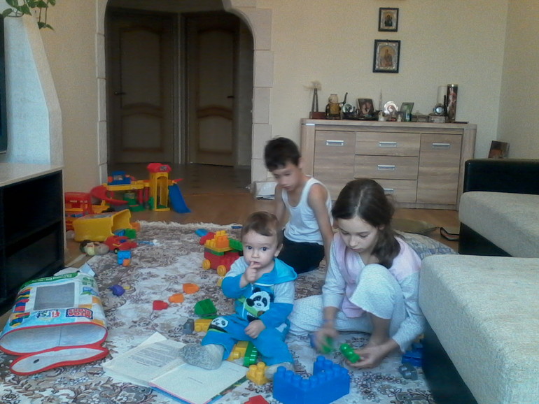 Позвольте представить вам свою семью. У меня трое удивительных,талантливых,умных и самых любимых детей на свете.Мой старший любимка Алекс ему почти 11 лет. Он отлично учится в четвёртом классе, занимается в музыкальной школе по классу гитары. Обожает читать книги про животных, про рыбалку и приключения . Моей дочечке,Ариадне, 9 лет. Она учится в третьем классе, у неё очень много увлечений,одно из которых собирать пазлы.Она это делает просто с молниеносной скоростью! Как все девочки Ариадна любит фенечки,браслетики и всякие девчачие штучки! Ну и самый младший в нашей семье Арсений. Ему 15 месяцев. Он просто обожает играть в мячик, в машинки и строить башни из кубиков.