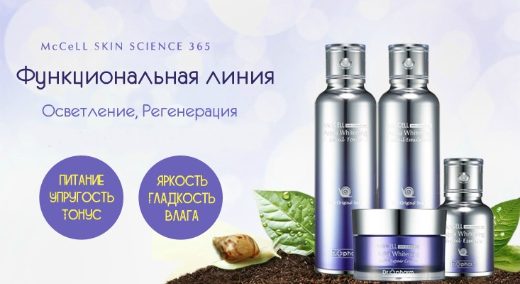 Осветляющая и увлажняющая линия с муцином улитки McCELL Skin Science 365 от Dr.pharm