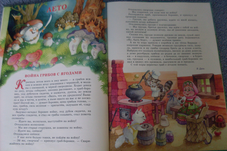 Стишки и рассказы, конечно, многие на вырост, но картинки то можно порассматривать и сейчас - иллюстрация тут очень приятная)) Моя дочка, как раз сейчас, только и занимается рассматриванием. Прочитать можем в лучшем случае "лягушку-путешественницу" и пару стихов (при отличном настроении)