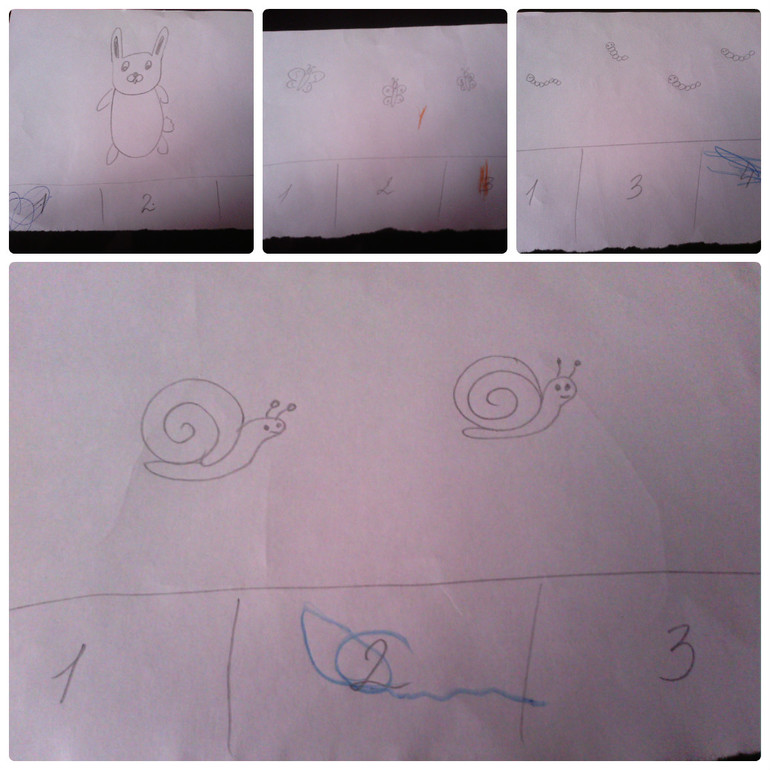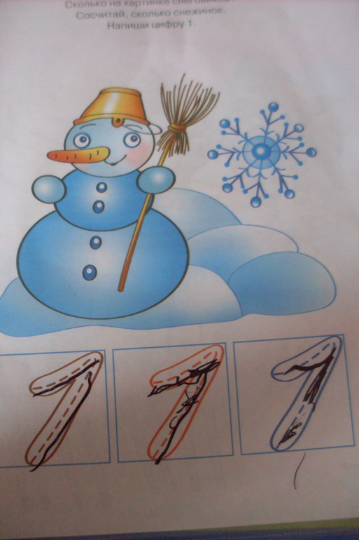Каждый день на нашей доске появлялись картинки с определенной цифрой, по ним считали зверюшек, обводили цифру по пунктиру, приклеивали наклейки, обсуждали картинку в целом.