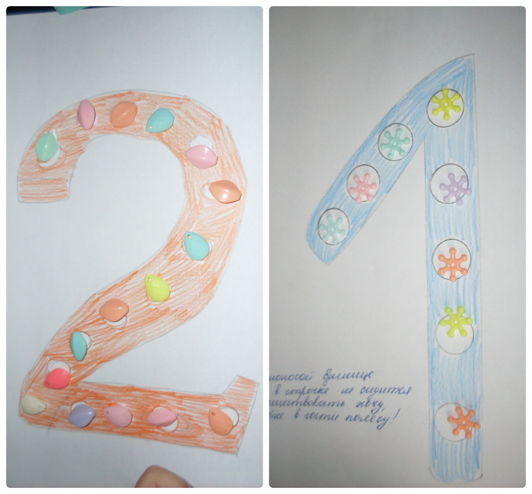 И вот такие Единичку и Двойку мучила)) Сначала кнопками их выкладывала.