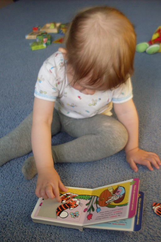 из двух - "Где чей малыш" подбирала (комментарий от Вики обязателен, голосом мамы "где же мой малыш, ау", голосом малыша "мама, где моя мама")