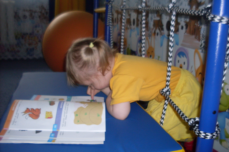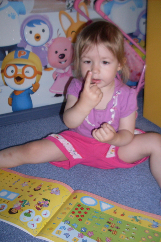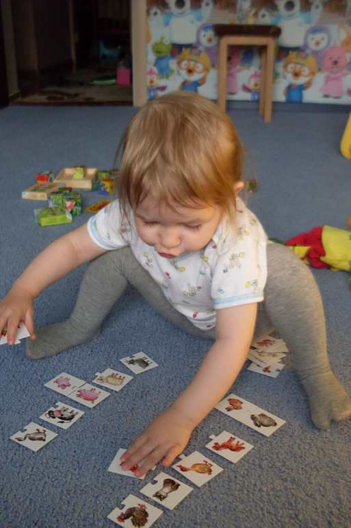 крышечек, мозаики (раньше тыкала просто так, сейчас пытается картинку собирать или выполнить задание)