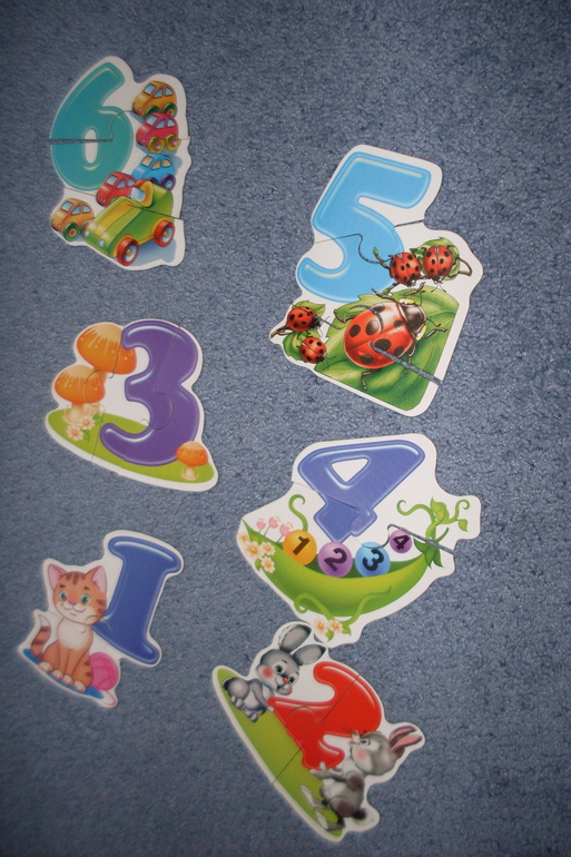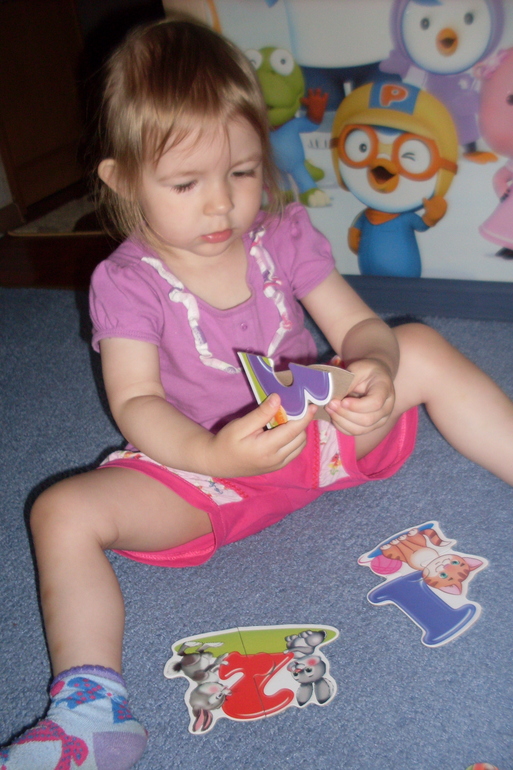 пазлы "Цифры" - хорошо собирает только единицу и двойку сама, остальное с моими подсказками (ленится)