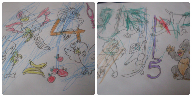 Периодически теперь в нее что-то доклеиваем, то наклеечки с такими цифрами, то зверюшек...