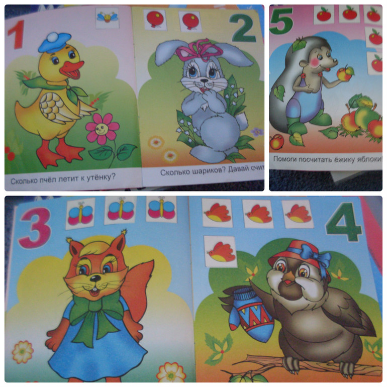 - Раскраска "Считаем до 10" (раскрашивала, я читала стишки, повторяли цифру)
