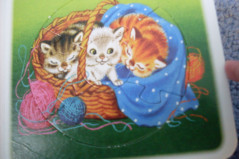 и в книге "Кто где спит?" любит собирать котят, тоже с моей помощью