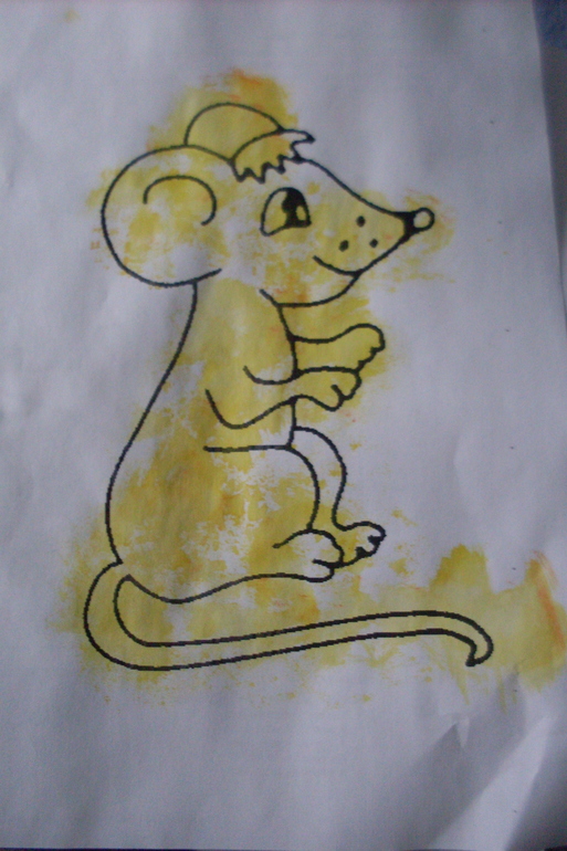 Раскрасила мышь красками губкой