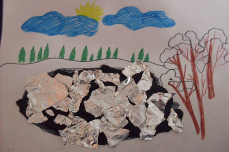 7) Выполняем задание из книги "Зима" Ульевой - создаем каток из пластилина и фольги