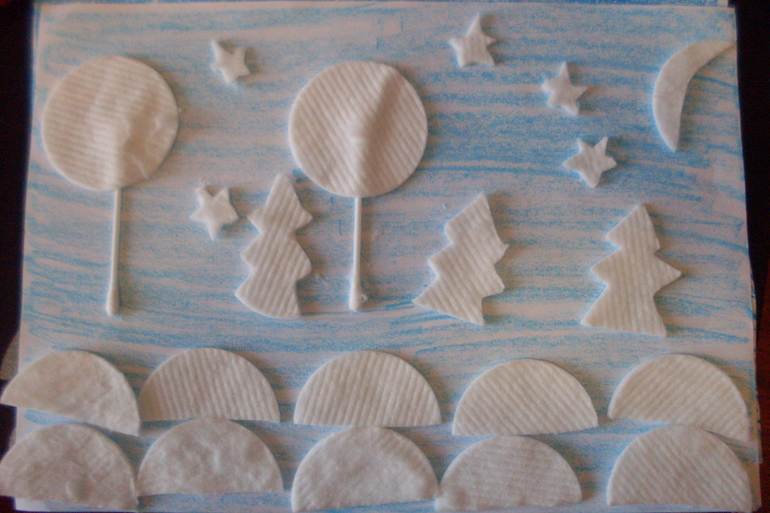 15 число: делала аппликацию из ватных палочек, ватных дисков и ваты