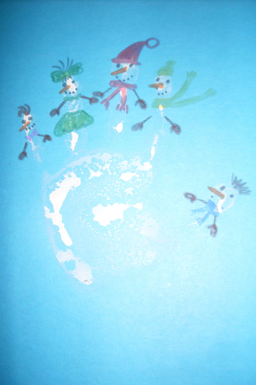 21 число: рисунок ладошкой "Снеговички" - ну любим мы снеговиков, что поделать)))