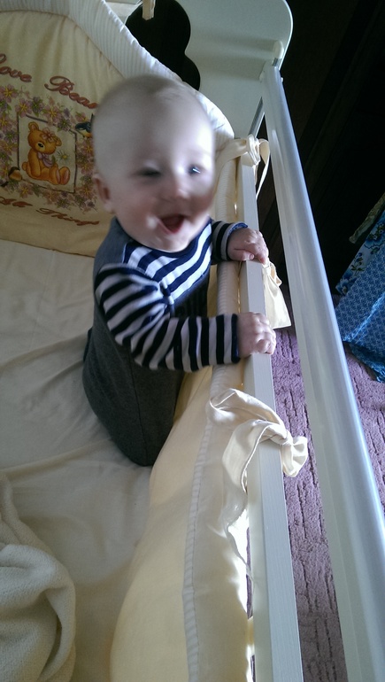 Да, да, вот так стремительно, вчера весь день с мамой тренировался - сегодня встал сам))) стоит держится до последнего, пальчики все белые от натуги, ревет что устал стоять, а отпускать пальцы страшно, потому что бух и бо-бо)))