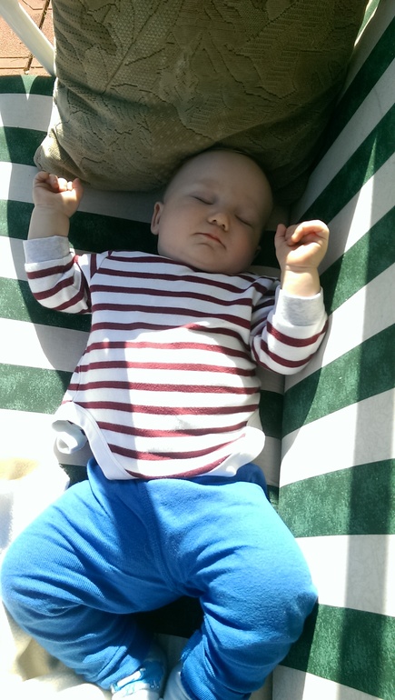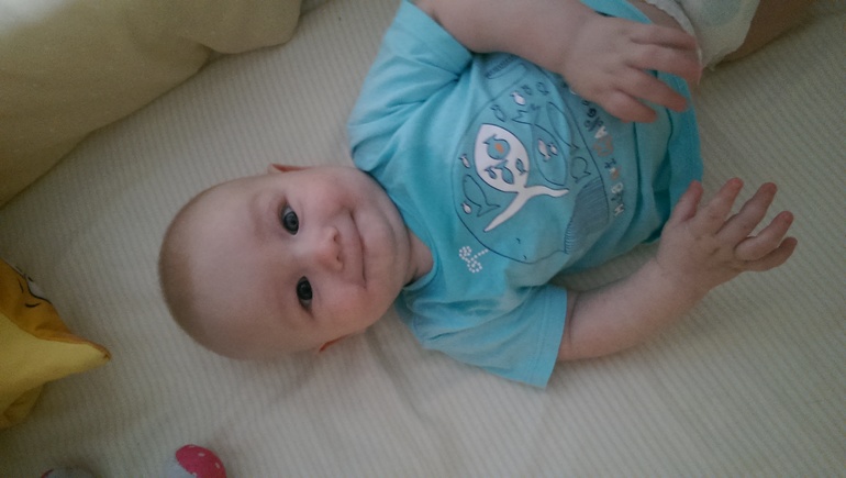 Нам 5 месяцев и 24 дня, сегодня заметила, что Мишик сидит сам, ровно на попе, без опоры на руки и на что-то сзади, ревет дуриком из-за того что что-то не получается, что падает, что игрушки все надоели, вообще все надоело (мама по ходу тоже), что ненаелся, что наелся, что на ручках, что не на ручках, в общем по любому поводу...все в один голос говорят что зубы лезут...ох не знаю, нижние вылезли без таких жутких истерик...мы вспомнили первые два месяца, когда за ночь кормились два-три раза, в 11 вечера, в два ночи и в четыре-пять утра, не знаю зубки ли это или из-за дачи и свежего воздуха день с ночью попутали... Едим гречку с блочком аж 300 мл съедает, ест с удовольствием, пюрешки ест тоже из бутылочки, с ложкой орет так что меня начинает трясти, ползаем по-пластунски очень шустро, или прыгаем как лягушонок, для нормального ползанья пока не хватает соображалки как одновременно передвигать ножками и ручками...кусаемся, щиплемся и царапаемся)))