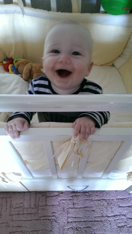 Через три дня нам будет полгода, мы сегодня первый раз встали в кроватке правда пока на коленки, бьемся обо все головой, требуем стоять на ножках, нужно постоянное внимание. Иногда днем и ночью дико до визга орем. Папа орет вместе с мишиком, в общем у всех я плохая. Рисовая каша не понравилась категорически